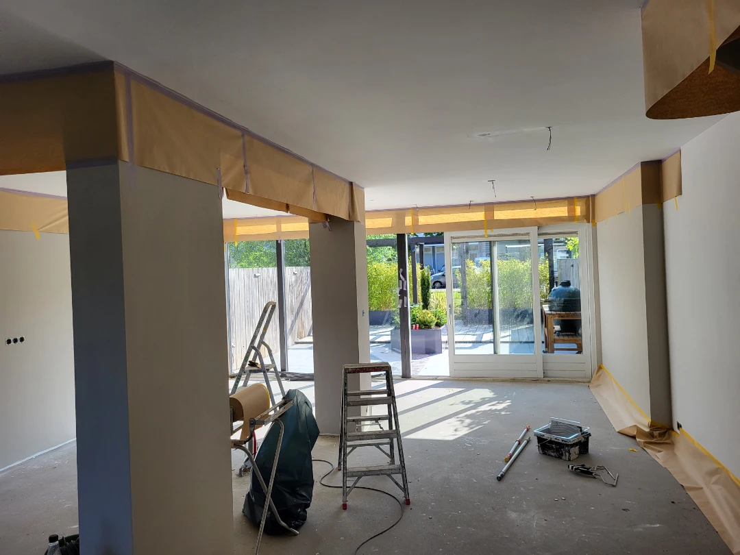 Vooral in nieuwbouwwoningen wordt plafond spuiten vaak gecombineerd met muren spuiten voor een uniform, strak geheel.